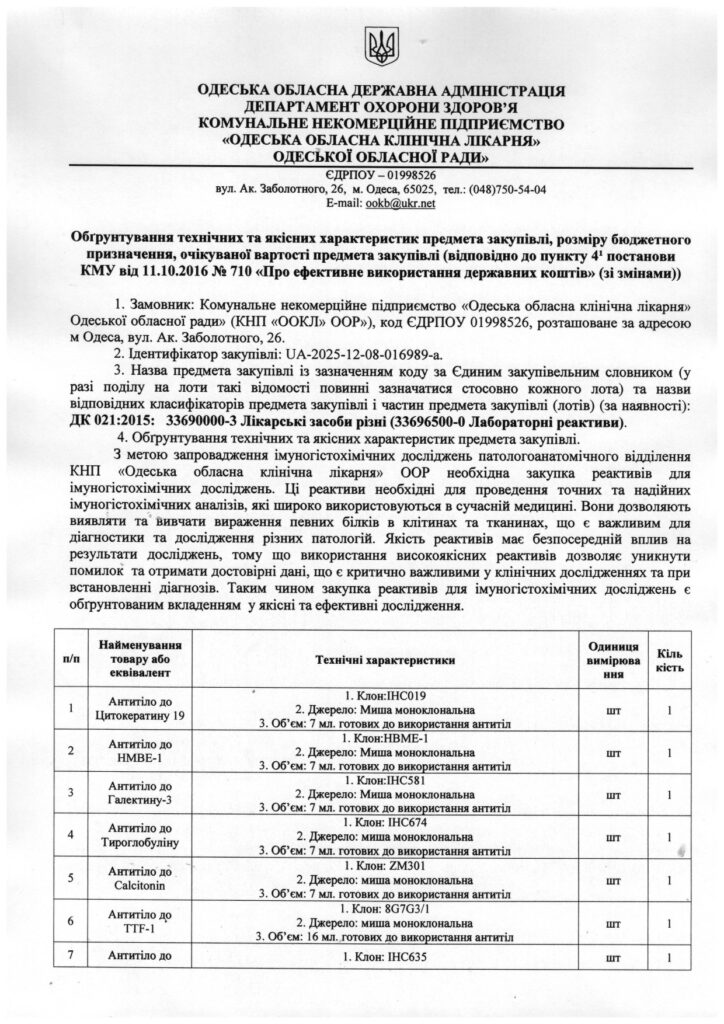 > закупівлі > Інформація щодо оприлюднення обґрунтування технічних та якісних характеристик предмета закупівлі розміру бюджетного призначення очікуваної вартості предмета закупівлі по коду ДК 021:2015: 33690000-3 Лікарські засоби різні (33696500-0 Лабораторні реактиви)
