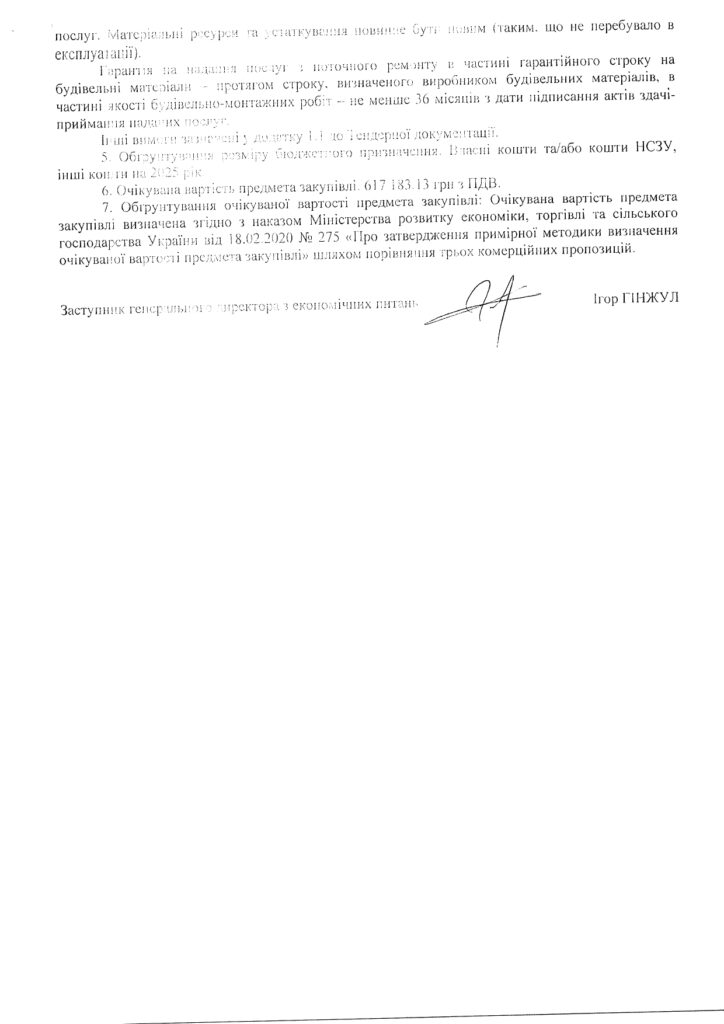 Інформація щодо оприлюднення обґрунтування технічних та якісних характеристик предмета закупівлі розміру бюджетного призначення очікуваної вартості предмета закупівлі по коду ДК 021:2015: 45450000-6 Інші завершальні будівельні роботи https://prozorro.gov.ua/tender/UA-2025-07-30-005446-a?oldVersion=true