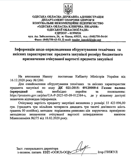 > закупівлі > Інформація щодо оприлюднення обґрунтування технічних та якісних характеристик предмета закупівлі розміру бюджетного призначення очікуваної вартості предмета закупівлі по коду ДК 021:2015: 09120000-6 Газове паливо (природний газ)